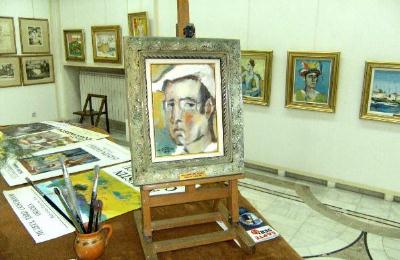 In mod ludic as spune, autorul a presarat in expozitie si cateva autoportrete. Ba chiar unul, postat pe un mini sevalet, tine loc artistului cand nu se afla personal in sala de expozitie pentru a-si intampina vizitatorii. Pe post de gazda eu l-am gasit pe bunul prieten al pictorului, criticul de arta Neculai Calugarita.