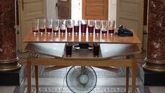 Imagine: Matei Arnăutu, Frica, instalație, masă din lemn, ventilator, pahare, telefon, sic, fire metal ice, 300 x 150 x 80cm, 2012. Courtesy of the artist, Anaid Art Gallery and Bucharest Biennale. Fotografie: Sorin Florea.