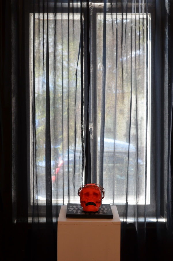 Se ia un craniu, sau mai precis ideea unui craniu si se aplica peste aceasta idee creativitatea unui artist plastic. Iata rezultatul: o expozitie generata de tinerii din grupul Vatra deschisa la sediul (vremelnic inteleg) din strada Jean Luis Calderon 44. Drept gazda l-am gasit numai pe Titi Ciocan care a fost bucuros sa imi pozeze langa personajul sau din rasina cu care a participat la eveniment. Am atasat si lista cu participantii si cu preturile.