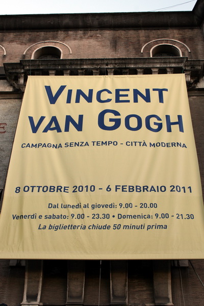 In prima parte, pe panourile din cateva saloane, texte numai in italiana (?) contextualizau foarte bine perioada artistica in care a creat Van Gogh, detalii biografice, potentialele sale modele de inspiratie, artistii care l-au influentat.